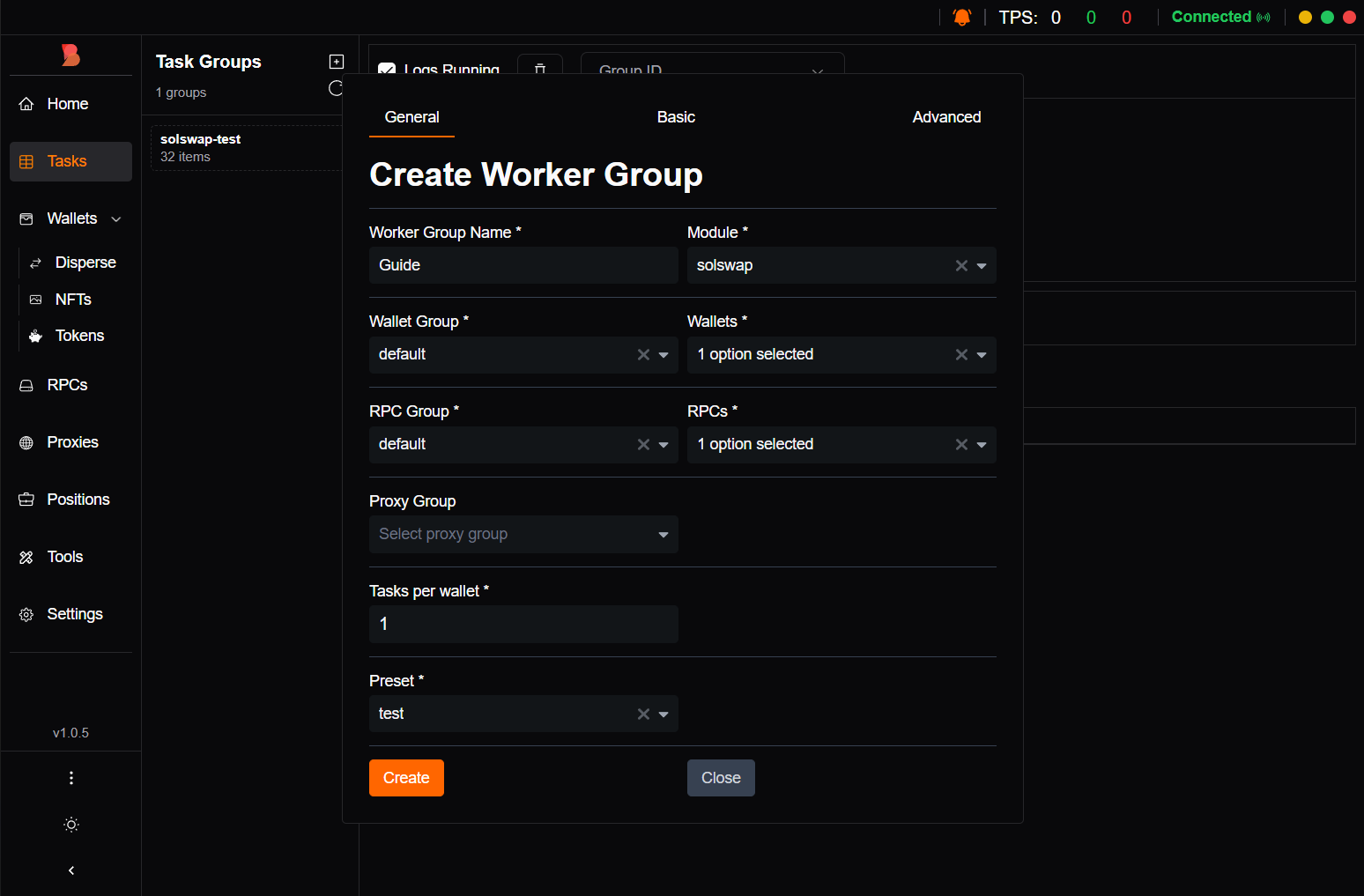 Set the slippage percentage for buying/selling - how much the price can change before the transaction is considered invalid.